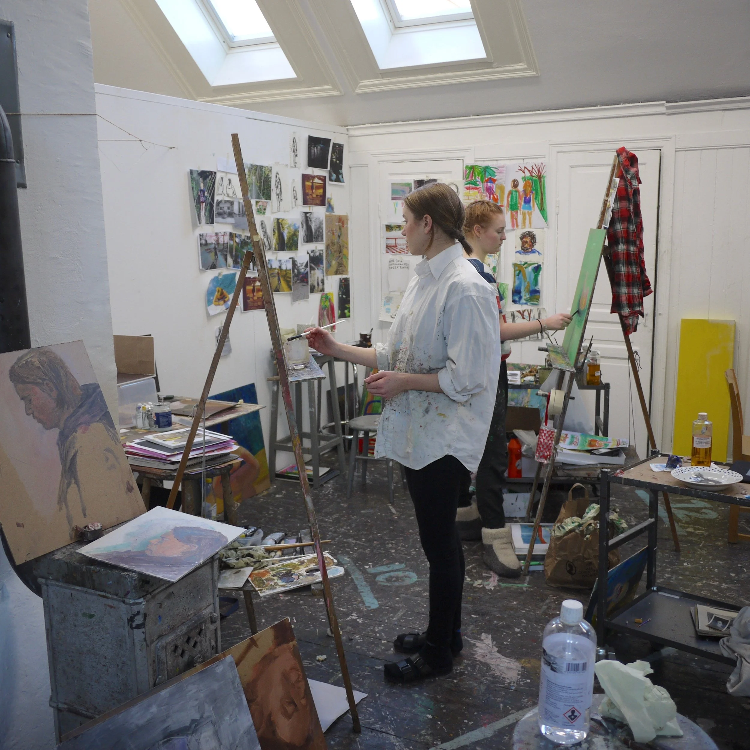 Tvåorna arbetar i individuella bås och mindre ateljélokaler på 4 trappor, 1 trappa och över gården. De roterar och byter plats tre gånger per läsår.
